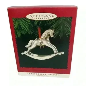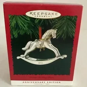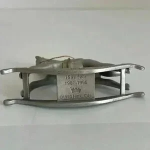 Hallmark Pewter Rocking Horse. Anniversary Edition celebrating 15 year. Fine pewter. Dated - 1995. Keepsake Ornament. New in box. Never displayed. Pet free smoke free environment.