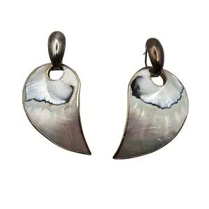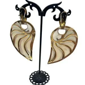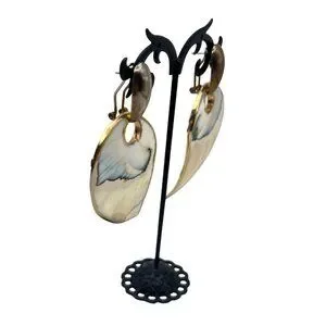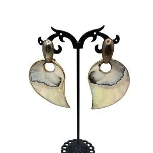 Mother Of Pearl Reversible Omega Back Earrings Abalone Gold Tone Statement Vtg