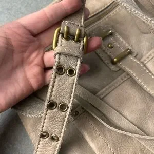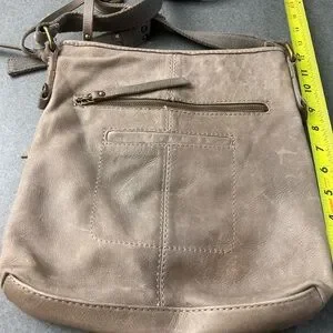 Elevate your style with this chic taupe leather crossbody bag. Perfect for everyday use, it combines fashion and functionality. No odors
