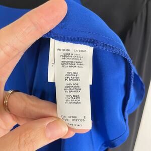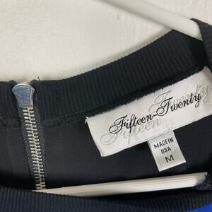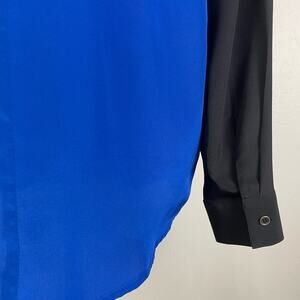 Fifteen Twenty | NWT Blue Black Colorblock Zipper Long Sleeve Flowy Silk Blouse
