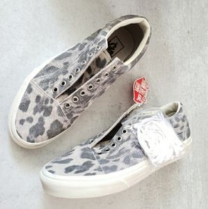 Vans Old school Lace Up Leopard Animal Print Shoes Sneakers Grey Tan Size 6