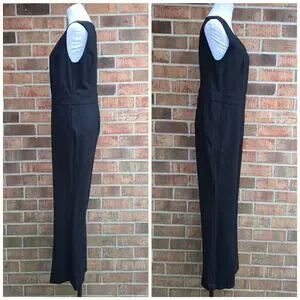 Spanx Perfect Sleeveless Jumpsuit Large Petite LP Black Stretch Ponte Knit Vneck