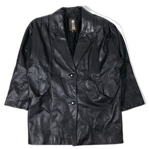 VINTAGE Black 100% Leather Western Cowboy Button Down Rancher Coat Jacket Small