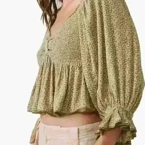 Elevate your style with this chic green smocked top. Perfect for any occasion, it features a flattering fit and elegant design.