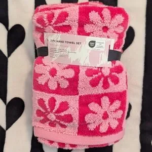 Bright pink hand towel set with floral design. Perfect for adding a pop of color to your bathroom.