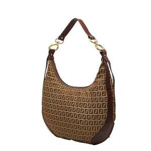 Fendi Zucchino Shoulder Bag 8BR465 Brown Canvas and Leather Women's FENDI