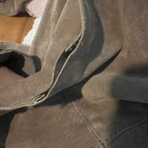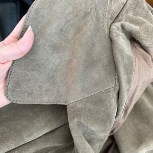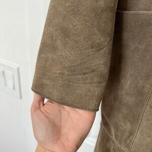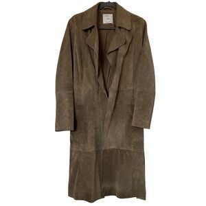 MNG Mango Genuine Leather Suede Trench Coat Belted Taupe Double Breasted