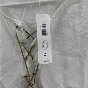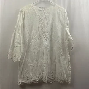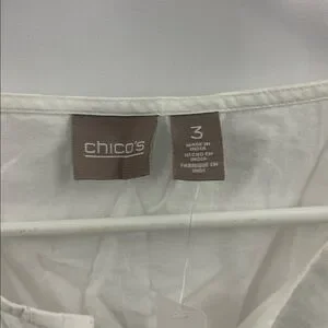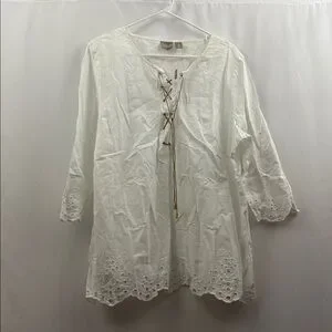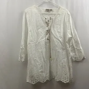 Chico’s Peasant Top 3/4 Sleeves Optic White Blouse Top Lace Up Tunic Women’s New
