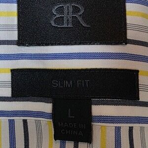 Thomas Mason x Brooks Brothers collab, superfine shirting dress shirt in a multicolor stripe pattern woven in Italy. Features a classic collar, button-front closure, and button cuffs. The iconic BR monogram is embroidered on bottom front of shirt.