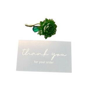 Add a fresh pop of green to your look with this eye-catching peony brooch. Featuring layered petals in rich, dimensional green tones, this floral piece is accented with a luminous teardrop “dew drop” detail that catches the light beautifully. The graceful gold-toned stem adds warmth and contrast, giving the brooch an elegant, nature-inspired silhouette.