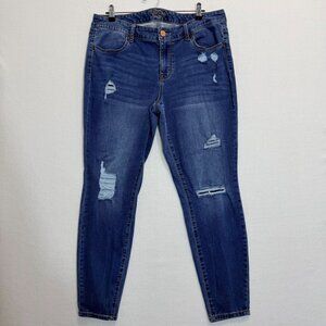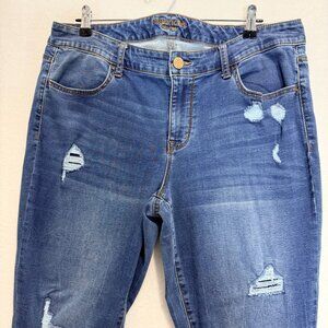 Maurices Mid-Rise Distressed Denim Skinny Jeans Womens Size 16W Regular Blue Stretch Fabric With Ripped Design