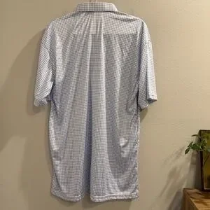 Collars & Co NWT Size XL Thin Blue Check Dress Collar Polo crafted in a performance stretch fabric for a polished yet comfortable fit. Features the brand’s signature structured dress-style collar with a modern thin blue check pattern, perfect for office, golf, or elevated everyday wear. Lightweight and breathable with flexible stretch for all-day comfort while keeping a sharp, tailored look. New with tags. Pit to pit approx. 24”, length approx. 33”.
