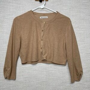 Reformation Janice Knit Crop Cardigan M Button Up 3/4 Sleeve Tan Orange