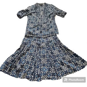 Alfani twin set lined midi skirt with top size 10 100% cotton blue floral office