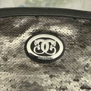 Stylish metallic sequin design. Perfect for organizing essentials. Eye-catching and elegant.