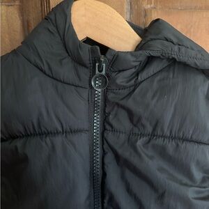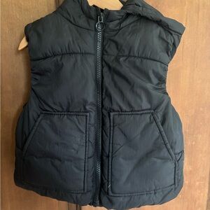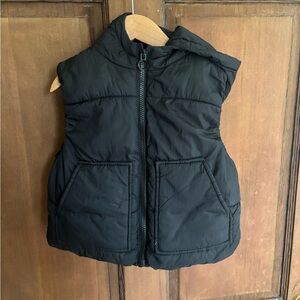 Chic Zara puffer vest in black. Features a sleek design with a comfortable fit. Size 18-24 months