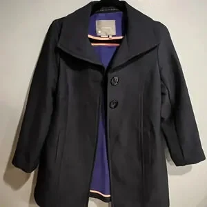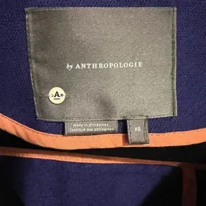 ANTHROPOLOGIE WELLESLEY PEACOAT MID-WEIGHT jacket nicely detailed with wing color and coral contrast piping in XS. Preloved, but in excellent condition!