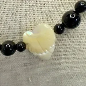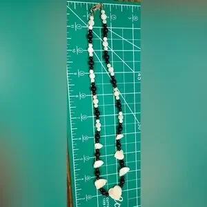 Vintage Mother of Pearl & Black Beaded Necklace 18” 925 Silver