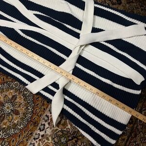 Roxy Womens XS Navy Blue White Striped Belted Open Front Chunky Knit Cardigan