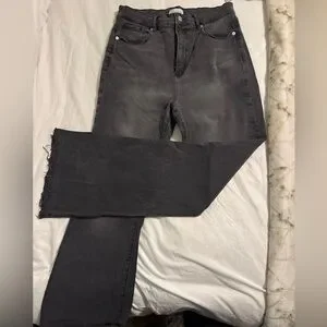 Washed black with raw hem