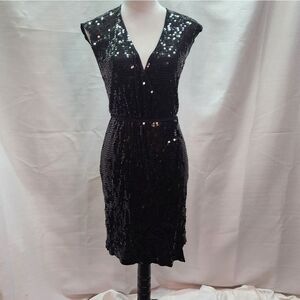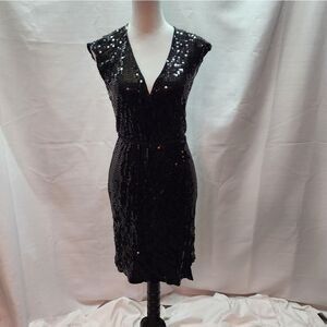 MICHAEL Michael Kors Black Allover Sequin Wrap Dress Size Petite Medium