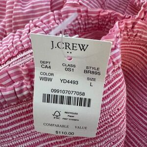 J Crew Striped Mini Dress Pink Womens Large Smocked Tiered Beachy Resort