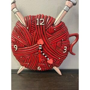 Allen Designs Studio Red Yarn Ball Knitting Wall Clock Heart missing Pendulum