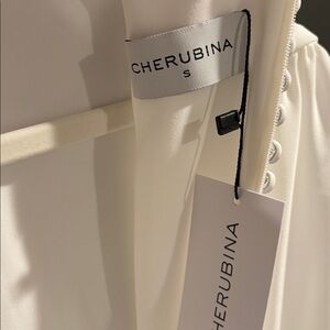 Cherubini Dina white-ivory small wedding dress midi with button accents.