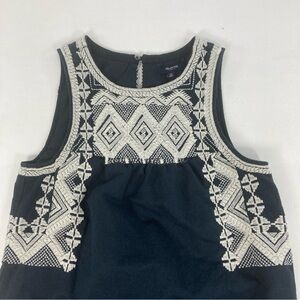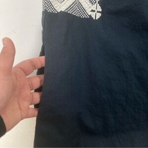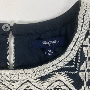 Madewell Stitchtake Dress XS Navy Blue Western Linen Blend Embroidered Sleeveles