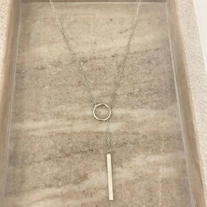♥ Beautiful Sterling Silver Long Circle & Bar Lariat Necklace