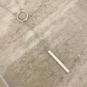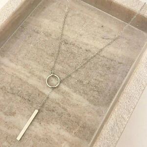925 Sterling Silver Long Bar Lariat Necklace Long Drop Circle & Bar Necklace