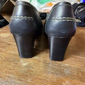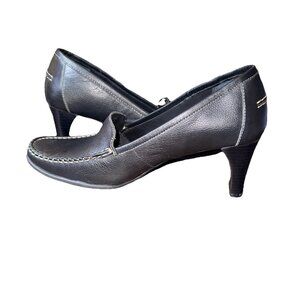 Hush Puppies Madison Heel Shoes Womens 10 Black Leather Slip On Loafer Pumps