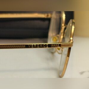 Sophisticated Versace glasses with a classic black and gold frame. Perfect for a stylish look.