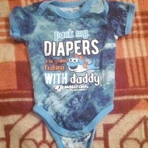 Charming blue onesie with vibrant fish design. Ideal for infants.