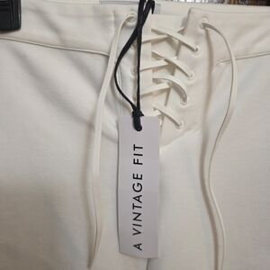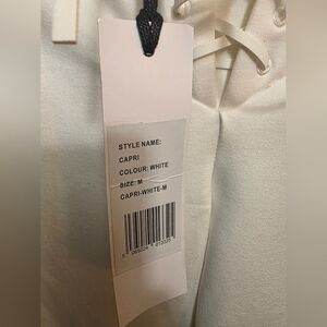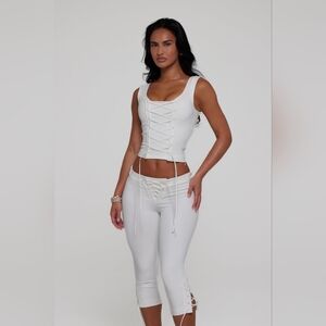Stylish white capri pants with lace-up details. Perfect for casual outings.