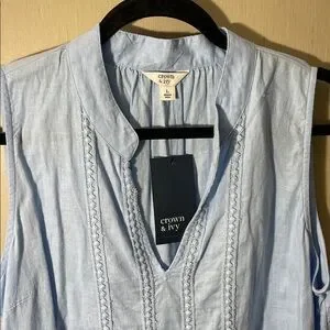 Crown and ivy eyelet large top v neck tiered NWT blue crochet