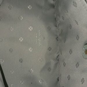 This is a Kate Spade Sylvia Large Dome Satchel in a light pistachio green color, crafted from crossgrain leather with a spade floral jacquard lining.