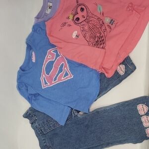 5/$30 BUNDLE of 3 T Shirts + Embroidered Jeans Elastic Supergirl Owl Long Sleeve