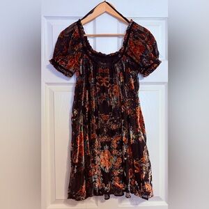 Free People Velvet Beautiful Blooms Mini Dress / Black Combo Small