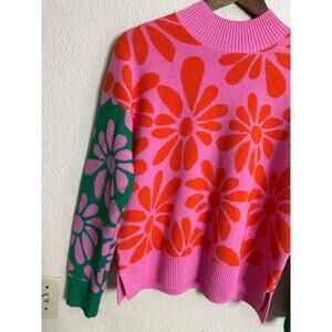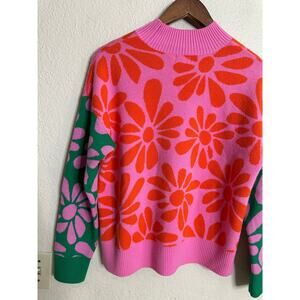 The eye-catching floral intarsia pattern adds a playful yet sophisticated touch, making it a true statement piece.