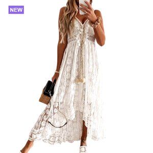✨ Lace Maxi Sun Dress with Tassel Accents