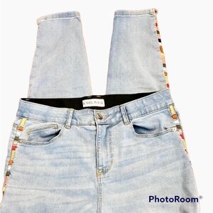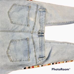 Amazing Stretch!! Feel like leggings!! Flattering to your curves! Rainbow embroidery down both lateral seams 🌈 Light Wash and skinny leg. See measurements!! Very comfortable stretchy waistband. 5 pocket styling! Excellent Condition!