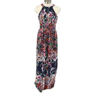 Eliza J Women's Navy Floral Printed Halter Maxi Dress Size 2