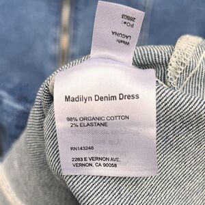 This Reformation Marilyn Denim Blue Sleeveless Mini Dress is a must-have for any fashion-forward woman. The dress features a zip-up closure and is made from high-quality denim fabric, ensuring both comfort and style. The sleeveless design and short dress length make it perfect for warmer weather, while the blue color adds a touch of sophistication to any outfit.