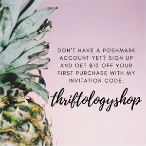 Don’t have a Poshmark account yet? Sign up and get $10 off your first purchase with my invitation code: THRIFTOLOGYSHOP