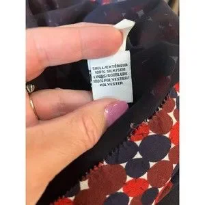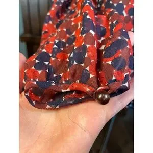 Diane Von Furstenberg Aleni SILK Smocked Long Sleeve Blouse Red Blue Geometric 2