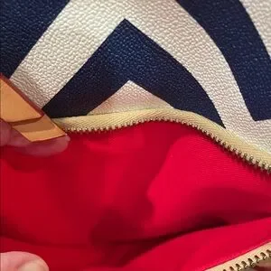 Chic crossbody with bold chevron design. Navy and white pattern. Ideal for daily wear. Like new has one spot on the corner as seen in picture but otherwise in excellent condition.