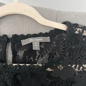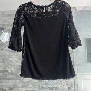 Blue Tassel black lace top with 3/4 bell sleeves