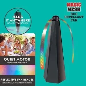 Magic Mesh Bug Repellent Fan reflective fan blades keeps flying insects out of your personal space.