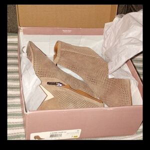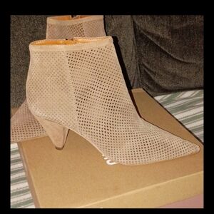 Franco Sarto "Bobbi" Perforated Suede Ankle Bootie Taupe Leather 7 M US